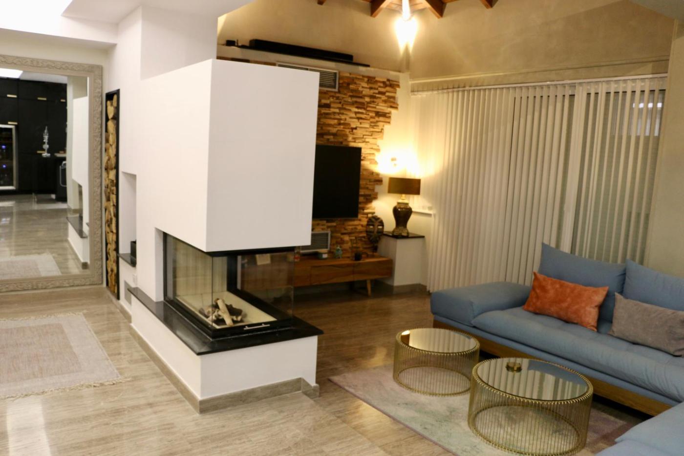 Deluxe Apartment. This apartments special feature is the fireplace. Featuring a private entrance, this air-conditioned apartment consists of 1 living room, 2 separate bedrooms and 2 bathrooms with a bath and a shower. The fully equipped kitchen features a stovetop, a refrigerator, a dishwasher and kitchenware. The spacious apartment provides a washing machine, Smartphone, a tea and coffee maker, a flat-screen TV with streaming services, as well as garden views. The unit offers 2 beds.