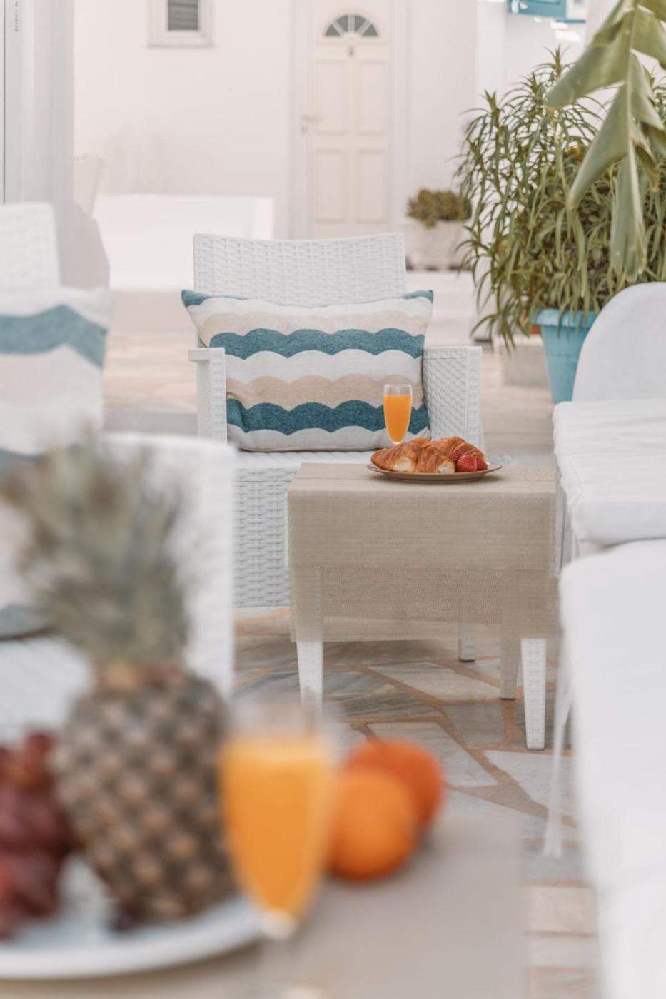 The apartment complex is halfway between the sandy beaches of Psarou and Platys Gialos. The bus stops just 10 metres from the premises.